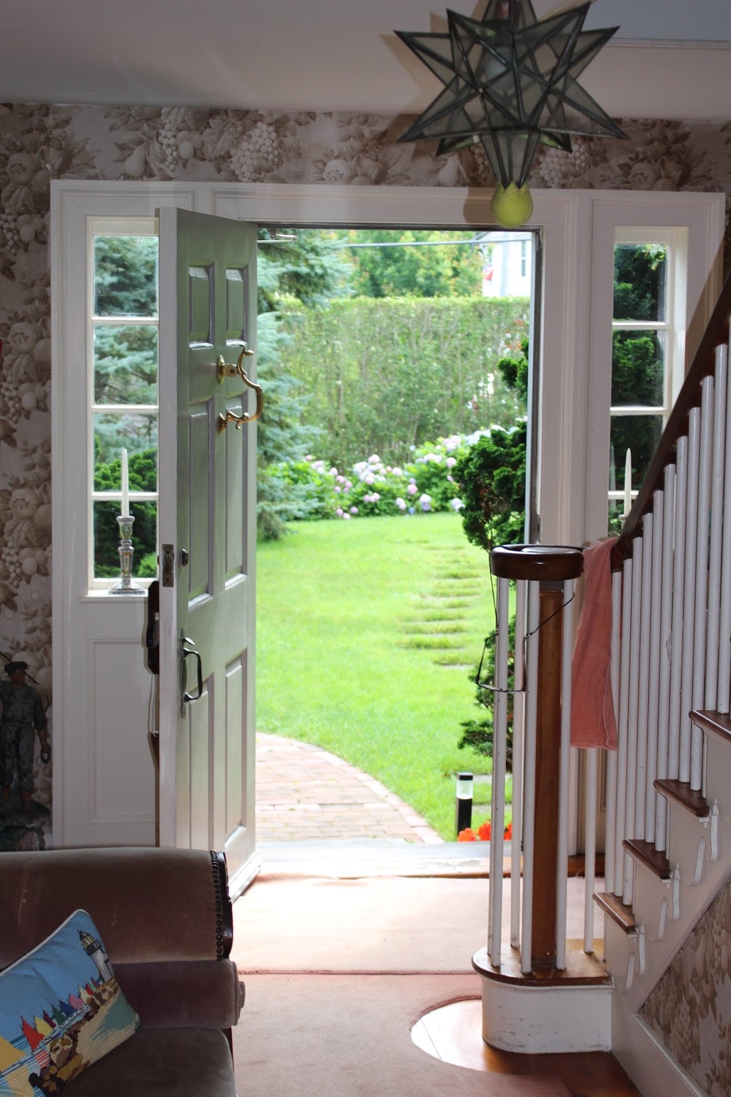 Then Joanna announced that she thought i would enjoy visiting Vlady…we had briefly met Vlady at the roof top soiree (he is a huge fan of Coq Au Vin)…so she called and off we went to visit the home of Vladimir Kagan, one of the most famous mid century modern furniture designers. Although born in Germany, he emigrated to the US as a young boy. His Nantucket home was warm, inviting and full of interesting bits of art. His Nantucket home is furnished with his late wife Erica Wilson’s work. (She is an artist as well…an embroidery/needlepoint designer). Hollie Hopkins - your mother undoubtedly knew of Erica Wilson. I had expected to see his furniture everywhere but he said most of his work is in their New York apartment. He proudly wanted to show us his garden and as difficult as it was for him to get around he joined us outside. Then he insisted we walk all through the house....and we did... and Joanna was right i SO enjoyed this visit. It was like walking through a museum…loved it.